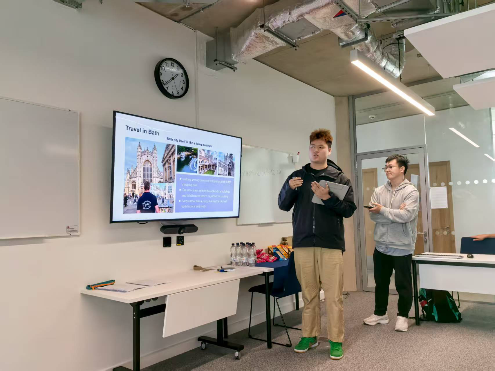 在这次令人难忘的硕士体验之旅中,一个重要的环节是每位同学都需以“My first look at postgraduate life in UK”为主题,进行一次小组内的个人展示。这个任务对我来说既是机遇也是挑战,因为这要求我用纯英文来进行演讲。对于我来说,这无疑是一个不小的挑战,因为我需要克服语言障碍,同时还要确保我的展示内容既丰富又吸引人。为了准备这次展示,我从抵达巴斯大学就开始准备,反复修改演讲稿的逻辑框架,从初抵英国的直观感受,到课堂上的思维碰撞,再到对未来学术方向的思考,每个部分都力求既有细节支撑,又能体现出自己的独特见解。在练习过程中,遇到发音不确定的单词就立刻查词典标注音标,甚至把演讲稿录下来反复听,找出语气不够自然的地方。展示当天,当我站在小组同学面前,深吸一口气开始讲述时,最初的紧张渐渐被分享的热情取代。虽然中间有个别单词卡顿了一下,但我很快调整过来,结合自己在巴斯大学的真实经历,把硕士生活的吸引力生动地传递给了大家。