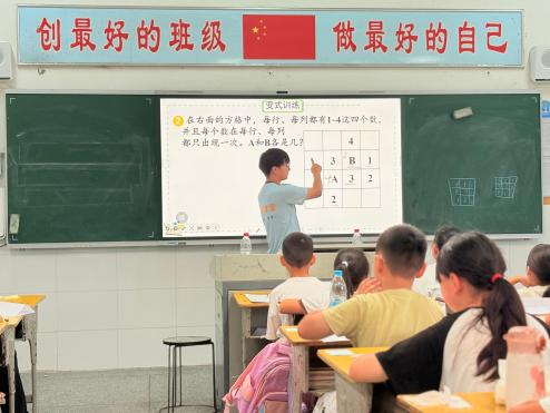 “数字1到4,填满格子不重复——横竖宫格都要守规矩!”支教老师尹赛举起手绘的彩色数独板,用自编口诀点燃了课堂。“既要降低畏难情绪,又要暗藏数学逻辑。”尹赛擦着汗笑道。当孩子们成功将答案填入正确格子时,欢呼声瞬间淹没了夏日的蝉鸣。