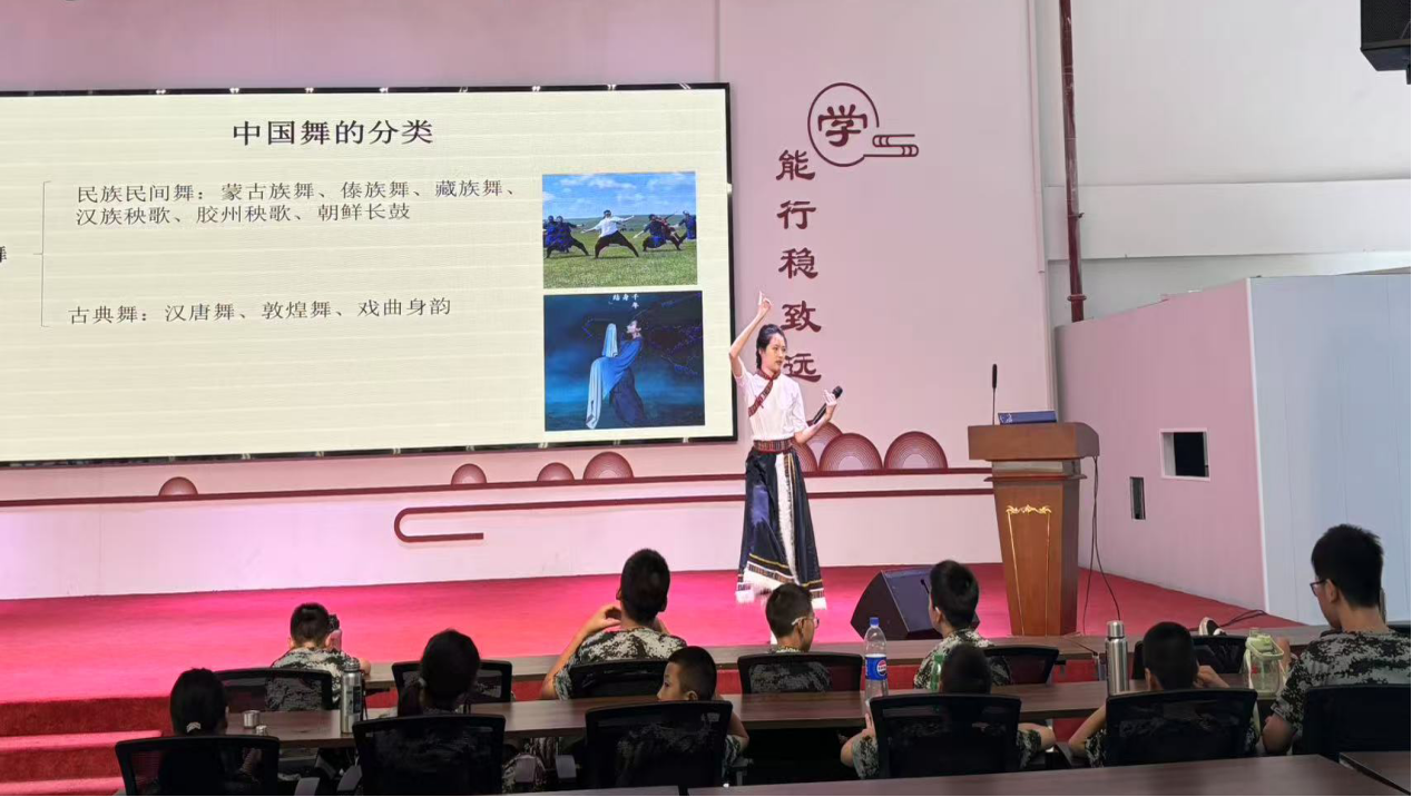随后的舞蹈课上,戴诗琪带来了藏族舞《藏风美少年》。她先向孩子们介绍了藏族舞的基本特点,比如颤膝、摆袖等标志性动作,再用分解教学法一步步示范。“手臂像云朵一样轻柔,脚步像踩在草地上一样有弹性”,她边做动作边引导,原本有些羞涩的孩子们渐渐放开手脚,跟着节奏摆动起来。