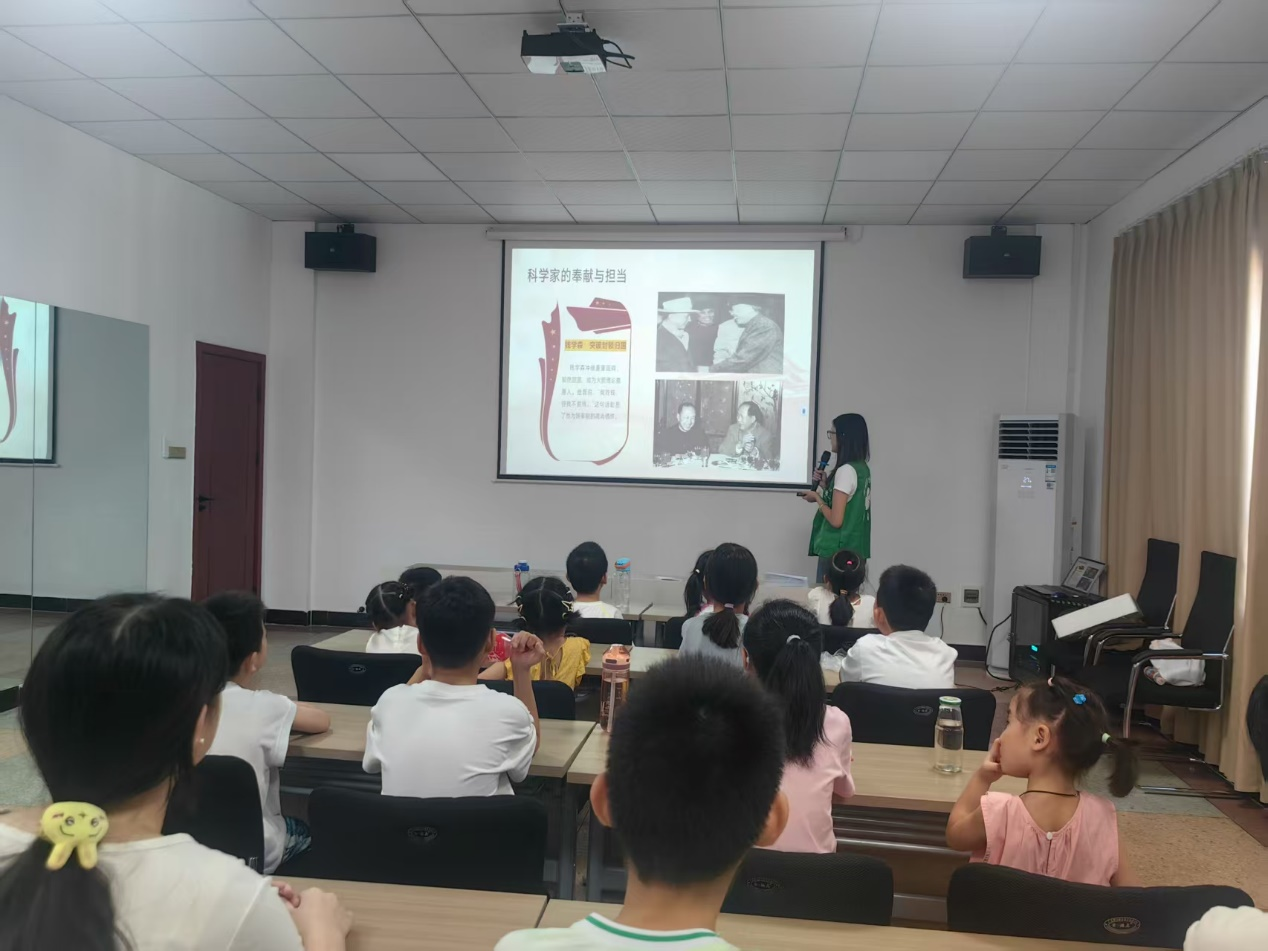 宣讲现场,郑雅文化身为故事讲述者。她没有使用深奥的理论,而是用生动形象的语言、丰富的图片和有趣的动画短片,为小朋友们揭开了“两弹一星”的神秘面纱。她重点讲述了钱学森爷爷克服重重困难回到祖国怀抱、邓稼先爷爷隐姓埋名投身戈壁滩的感人故事。郑雅文用孩子们熟悉的比喻,将科学家们为了祖国强大而无私奉献的精神娓娓道来,深深吸引了在场的小听众们。