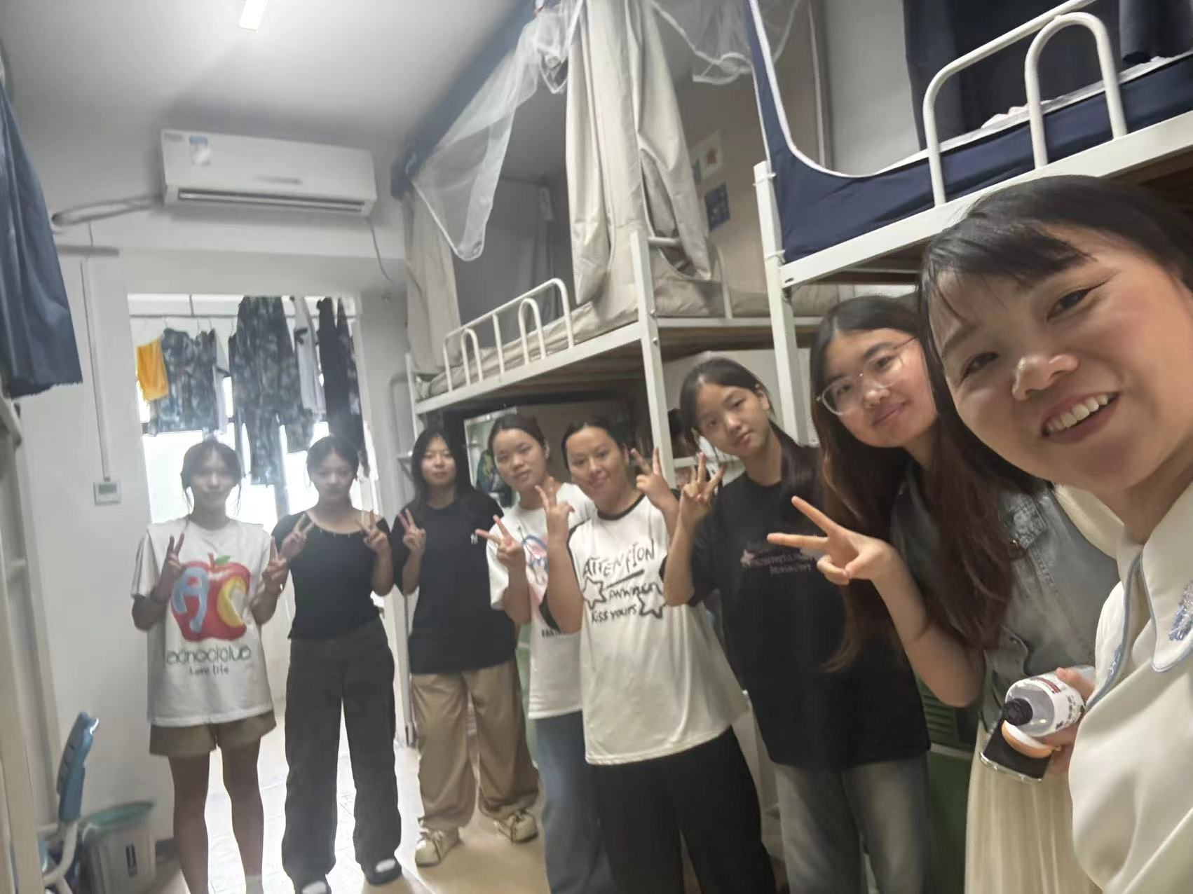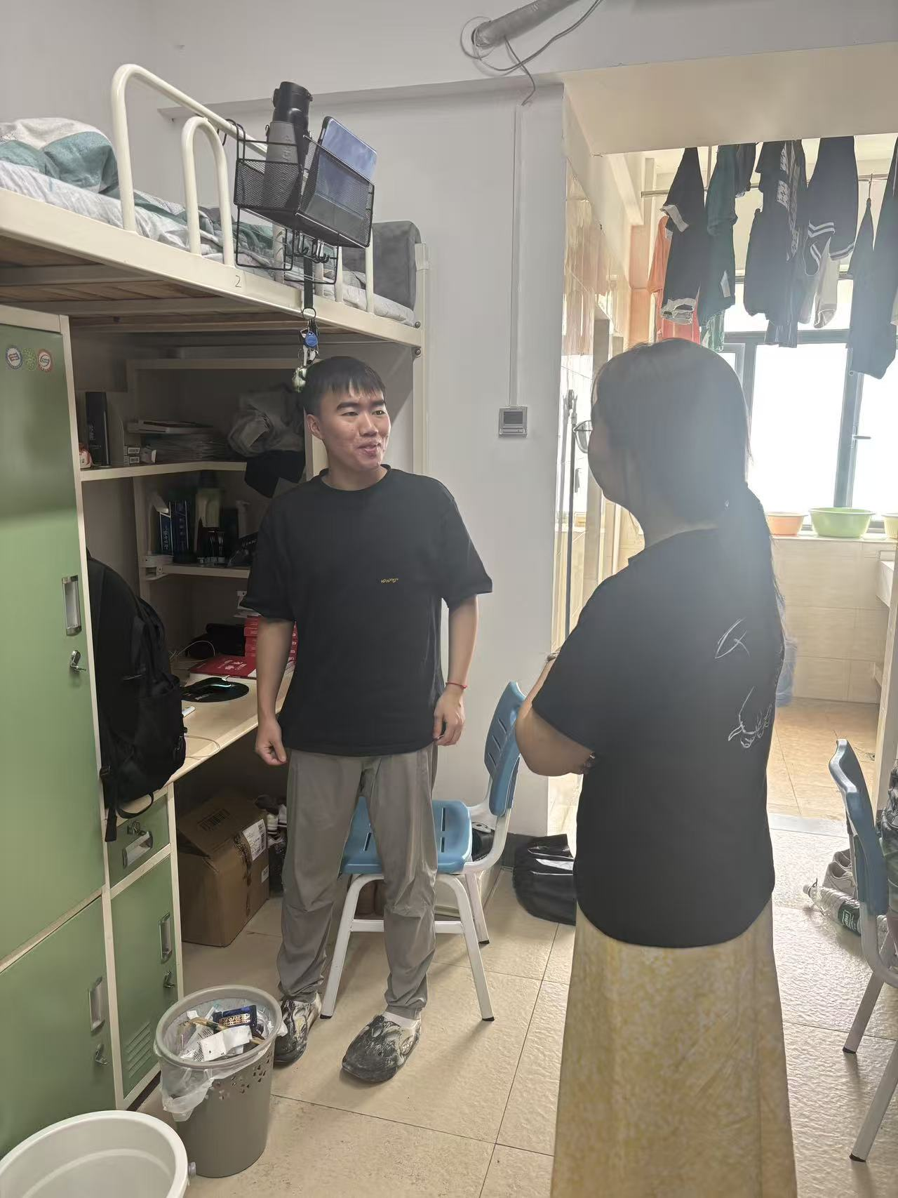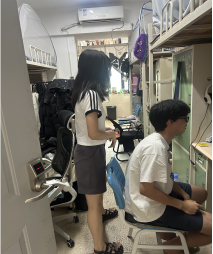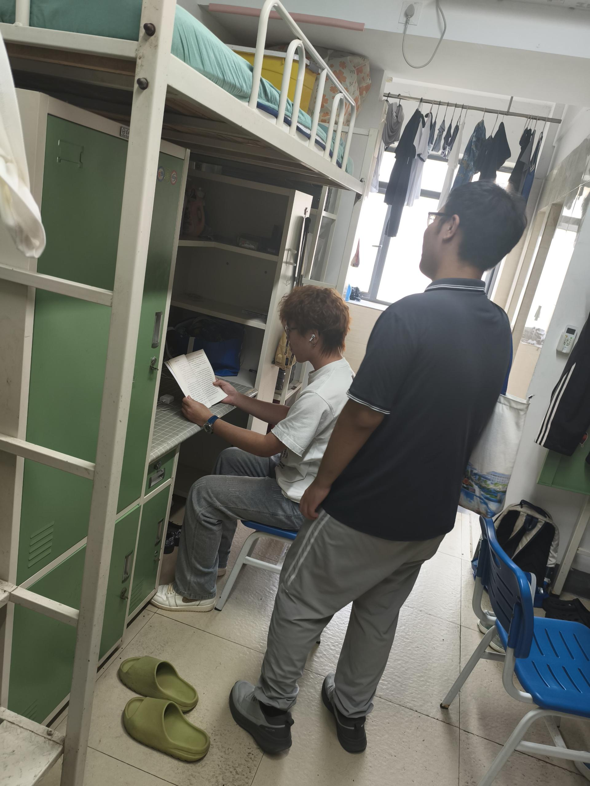 走访中,多数寝室展现出良好的精神风貌:地面整洁、书桌有序,部分寝室还通过绿植、文化墙等布置营造出温馨氛围。常桥老师对同学们的自律表现给予充分肯定,并鼓励大家继续保持,同时强调:"宿舍是第二课堂,整洁的环境既能提升学习效率,也能培养集体责任感。"针对个别需要帮助的寝室,辅导员现场协调物业维修,确保问题及时解决。