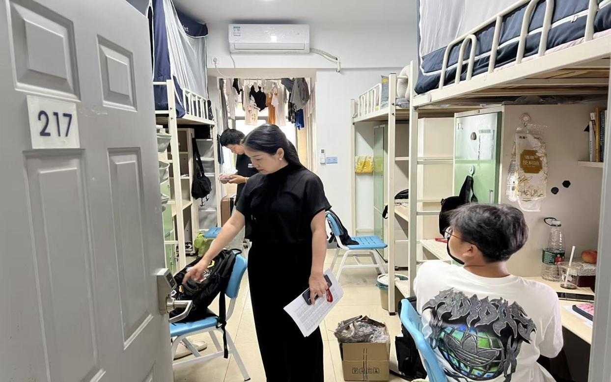 2025年9月10日下午,金融与经济学院党总支副书记常桥带领全体辅导员深入学生寝室开展专项检查。此次查寝重点聚焦搬迁后老生寝室的卫生状况、设施使用及安全规范,旨在通过实地走访强化学生社区管理效能。