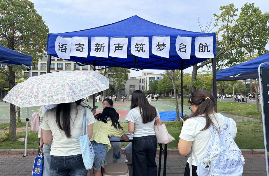 活动现场,蓝色帐篷下“语寄新声 筑梦启航”的标语格外醒目。学长学姐、任课教师、校园志愿者们纷纷化身“筑梦引路人”,或是提笔写下对新生的期许,或是面对面分享大学成长经验;新生们则在字里行间汲取奋进力量,在交流互动中明晰前行方向。