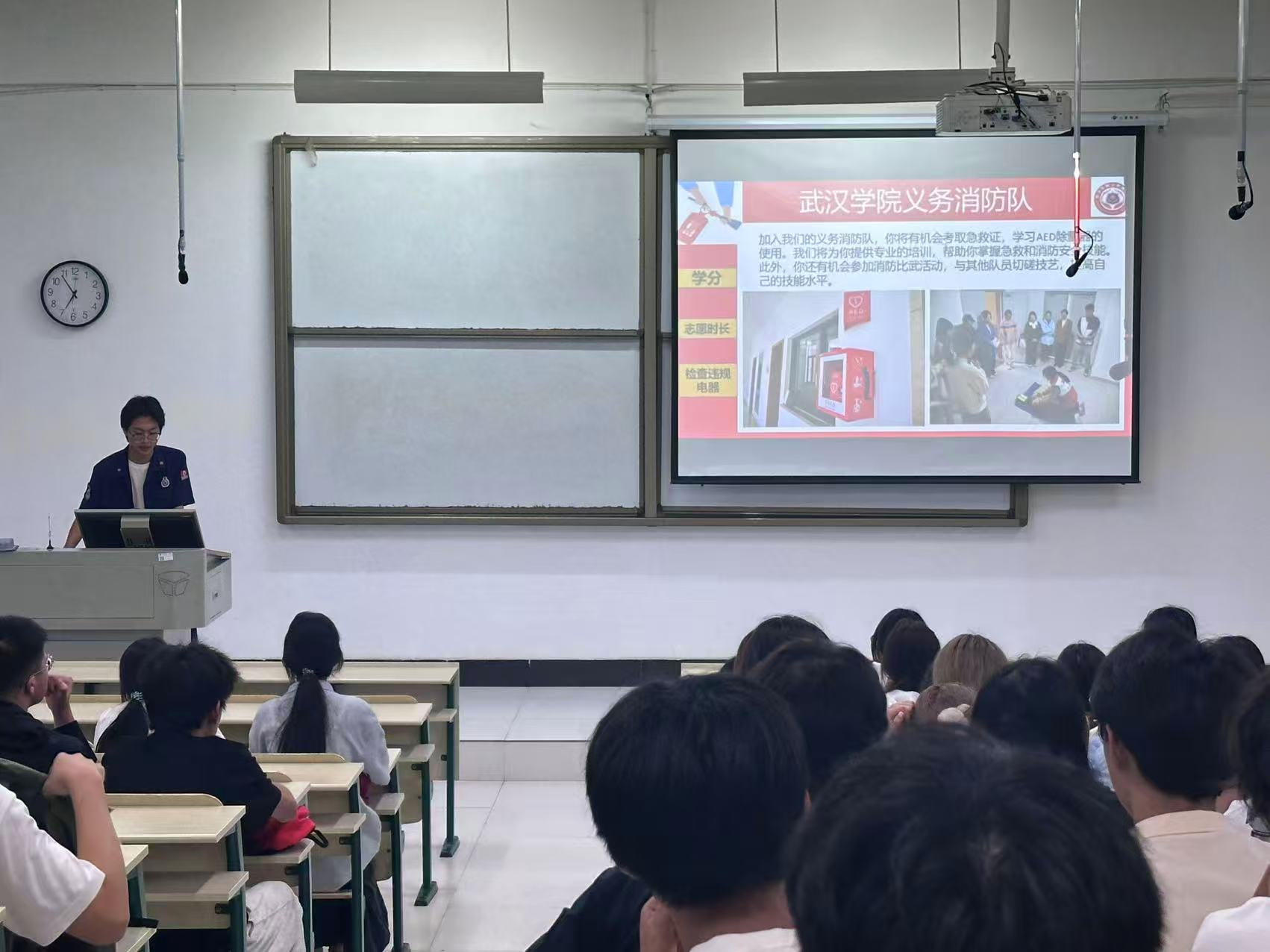 同时,主讲人向2025级新生们介绍了武汉学院义务消防队的组织架构。他指出,作为学校认定的学生组织,义务消防队建立了完善的机制,每次出勤参与学校的各类消防安全巡查、宣传活动等均可累积志愿服务时长,获得学校认定的第二课堂学分。这支队伍不仅是校园消防安全的重要力量,更成为学生参与校园治理、提升实践能力的重要平台。