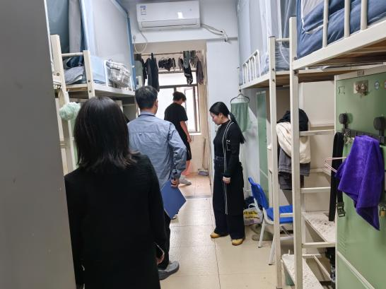 2025年10月29日下午,金融与经济学院党总支副书记常桥带领全体辅导员深入学生宿舍区,对竹枫斋、兰蕙斋内申请本学期“优秀文明宿舍”评选的候选寝室开展实地检查复查工作,旨在进一步夯实学生社区育人阵地建设,强化宿舍安全与学风建设成效。