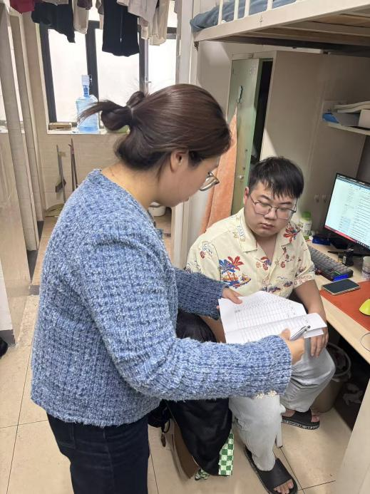 检查的同时,辅导员团队同步开展深度交流,既关注学生课业压力疏导、职业生涯规划等成长需求,也倾听对宿舍管理服务的改进建议。常桥老师特别叮嘱,“宿舍不仅是生活空间,更是育人的重要场景,希望同学们以优秀宿舍创建为契机,培养团队协作意识与精益求精的品格。”