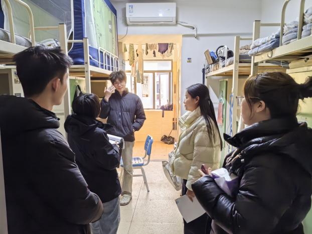 2025年12月26日下午,冬日的暖阳轻柔地洒在校园,金融与经济学院党总支副书记常桥带领全院辅导员,深入学生宿舍竹枫斋2舍和3舍,开展了暖心查寝活动,旨在督查寝室卫生、关心学生的期末复习状况,同时做好诚信考试引导工作,为同学们的期末冲刺保驾护航。