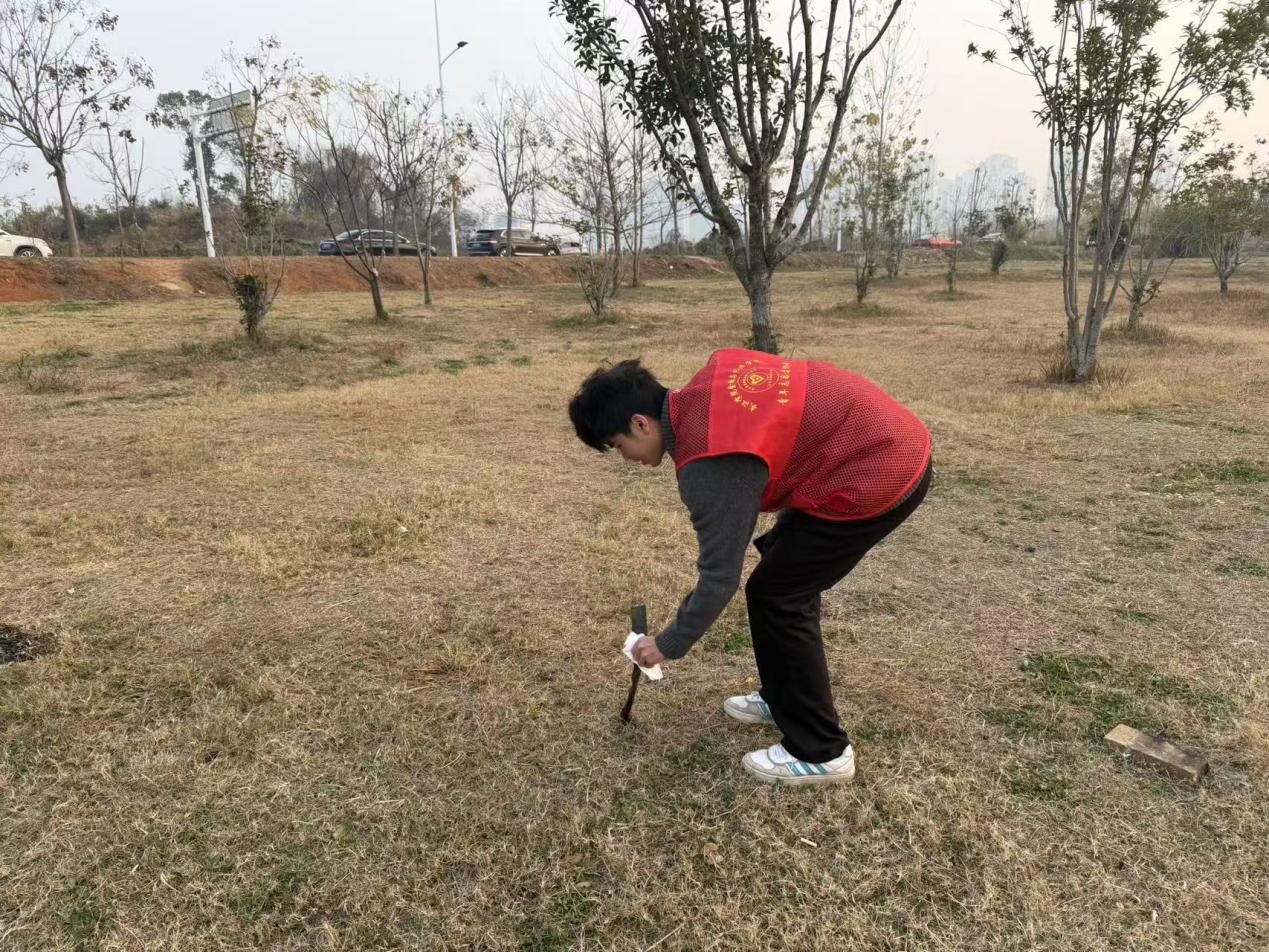 活动当天,同学们统一佩戴志愿服务标识,手持垃圾夹、环保袋等工具,沿黄家湖岸线进行“地毯式”清理。大家分工协作,认真捡拾散落在草丛、步道及湖岸边的塑料废弃物、烟头、纸屑等垃圾,并对杂物堆积处进行了重点清理。在劳动过程中,同学们还积极向周边游玩的市民和同学宣传湖泊保护知识,倡导“垃圾不落地,湖水更清丽”的环保理念。