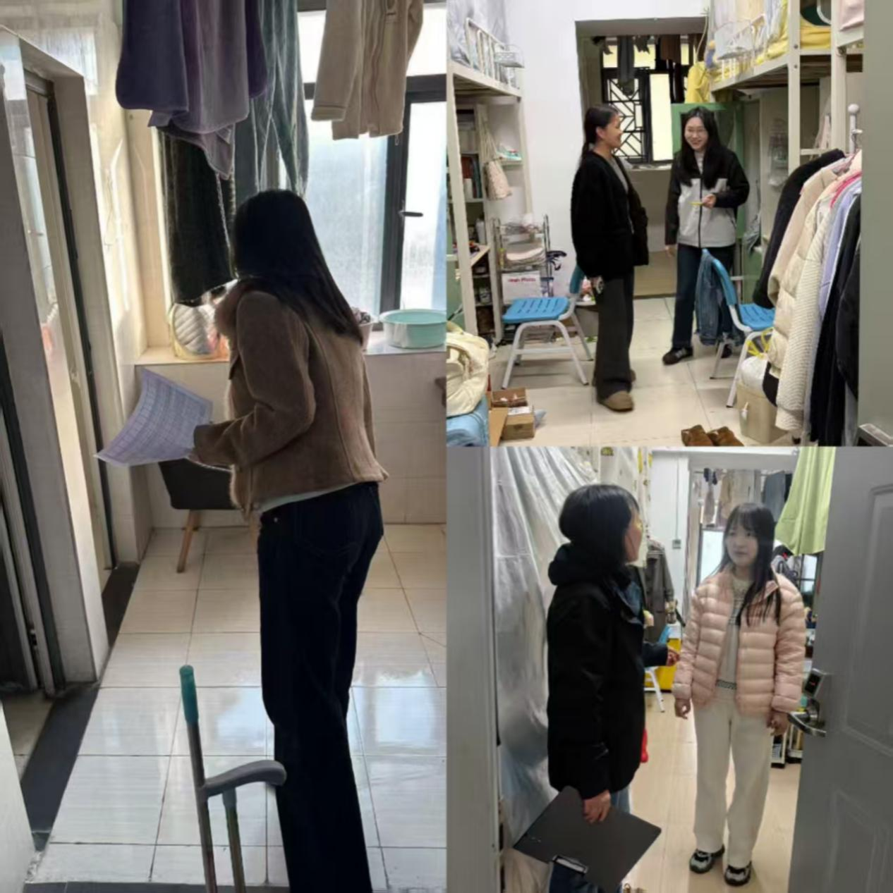 检查过程中,常桥老师深入各个楼层,仔细查看了宿舍的卫生状况、物品摆放及设施完好情况。她重点对违规电器使用、插排线路安全等隐患进行了排查,并与同学们亲切交谈,详细询问新学期的课程安排、生活适应情况及实际困难。常桥老师反复叮嘱同学们要严守安全底线,增强防火防盗意识,保持室内空气流通,养成良好的卫生习惯,共同维护公共生活空间。