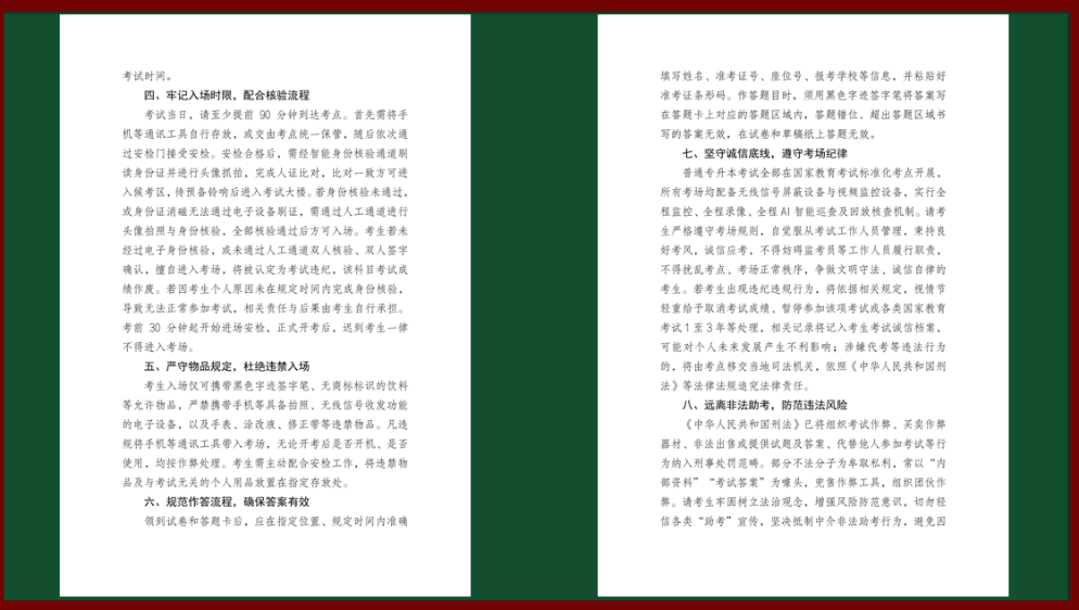 同时,辅导员细致讲解考场纪律规范,明确考生入场核验、物品携带、答题规范、离场要求等关键事项,着重强调手机、智能手表等电子设备严禁带入考场,提醒同学们提前整理考试证件与文具,遵守考点各项管理规定,自觉维护考场秩序。全体同学全程专注听讲、认真记录,切实掌握考试纪律与法律责任,树立起敬畏规则、诚信应考的正确观念。