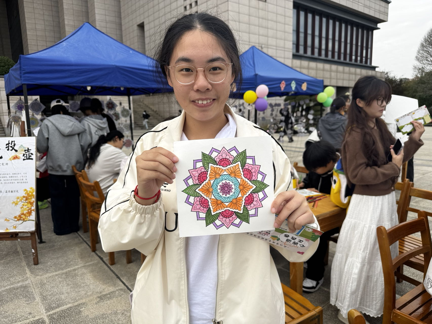 本届活动以“闯关集章”的形式开展,共设置七大主题互动站点,将心理健康知识与体育、文化、艺术元素有机融合。同学们在“自爱100%”站点写下对自己的鼓励与赞美,在“心灵彩绘”中静心涂绘曼陀罗,于“解忧投壶”“情绪保龄球”中释放压力,在“手忙脚乱”中挑战自我,通过“心问心答”学习心理知识,并在“同心鼓劲”中感受团队协作的力量。各站点设计兼具趣味性与心理引导性,让学生在轻松愉悦的氛围中学会关注内心、表达情绪、缓解压力。