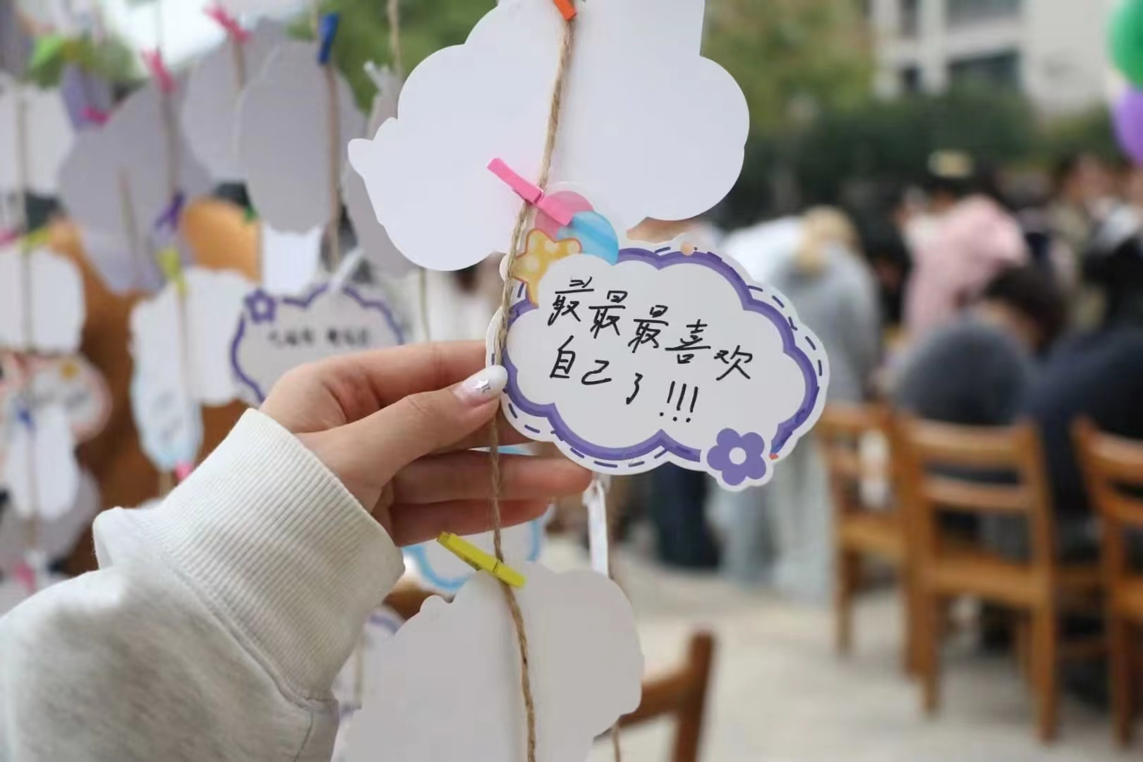 活动现场还设置了“共创未来树”集体创作环节,同学们通过签名与寄语共同装点象征成长与希望的立体大树,增强了彼此的归属感与联结感。整场活动不仅形式新颖、互动性强,更在潜移默化中传递了“身心同健康”的积极理念。