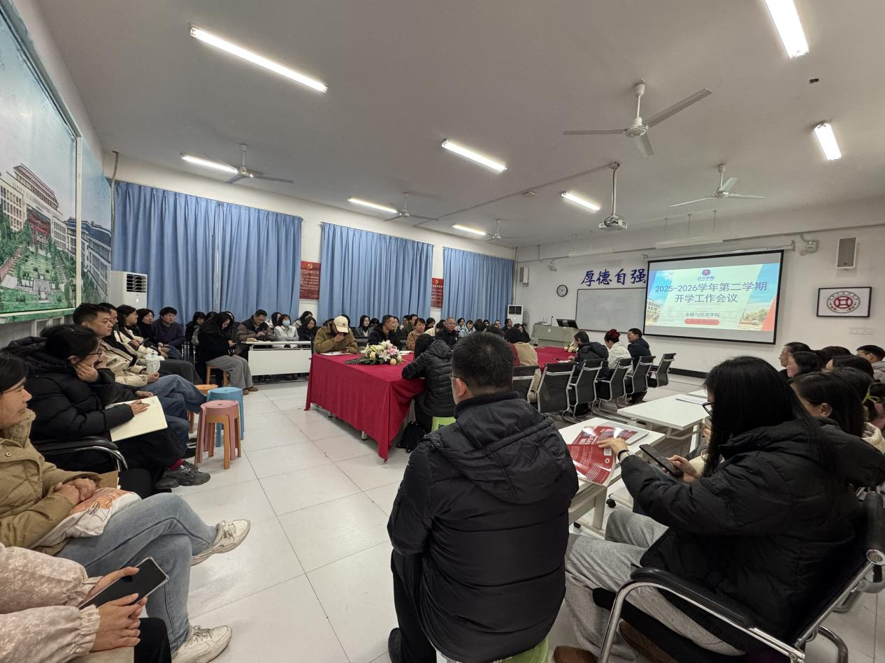 3月4日下午,金融与经济学院在3302会议室召开2026年春季开学工作会议,研究部署新学期目标任务和重点工作。学院院长黄汉民、副院长周利、副书记常桥与全院教师参加会议。院长助理曾志勇主持会议。