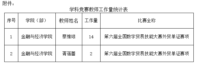 经过认真组织和积极备赛,由我院作为竞赛承办单位的第六届全国数字贸易技能大赛外贸单证赛项比赛圆满结束,根据《武汉学院大学生学科竞赛管理办法(2025年修订)》(武院政〔2022〕14号)文件规定,现将竞赛教师指导工作量分配结果予以公示,公示期为2025年12月5日至2025年12月9日(公示期三天)。公示期内如有异议,请以书面形式向学院反映,并提供异议的事实依据(包括必要的证明材料)。