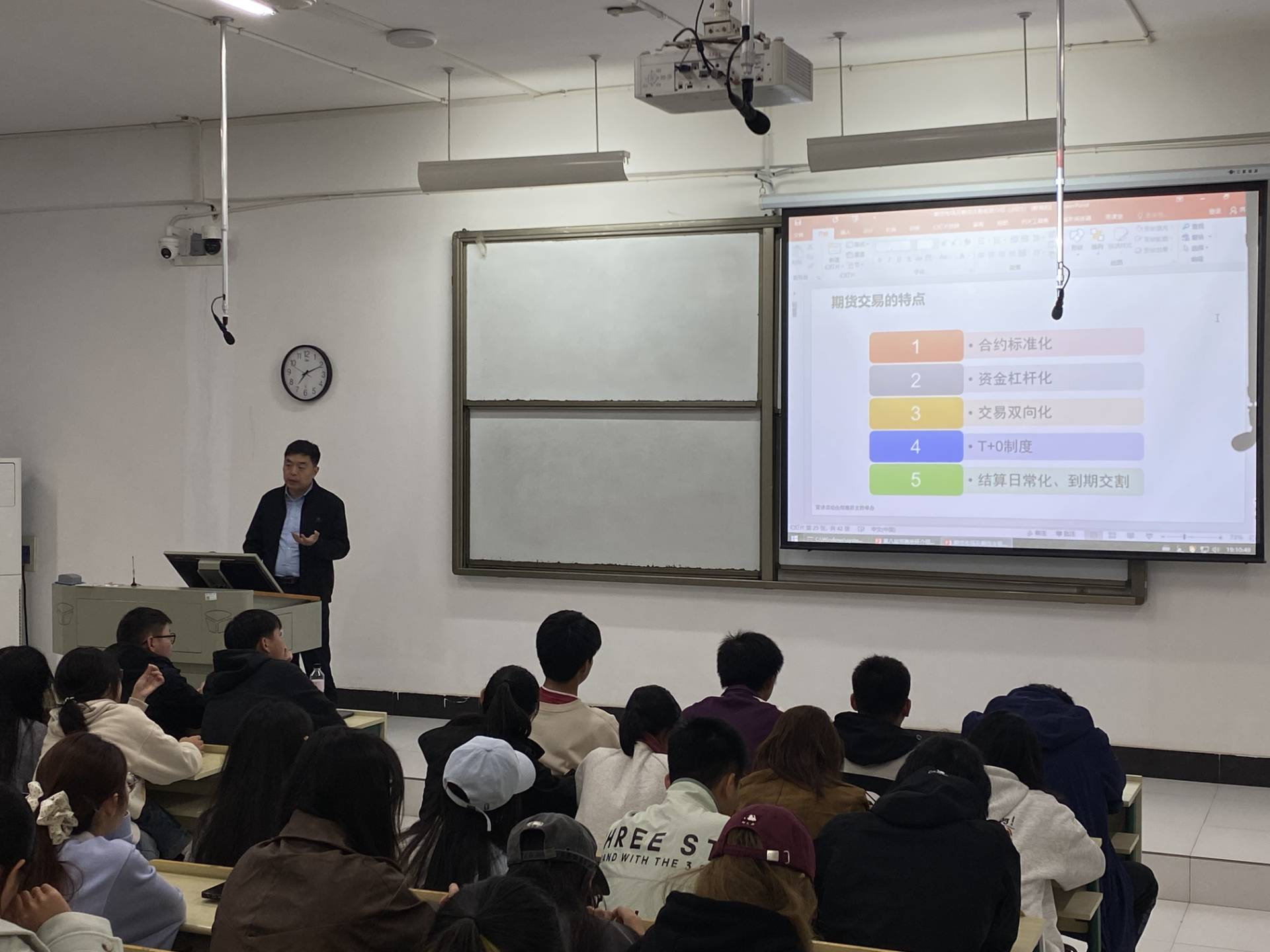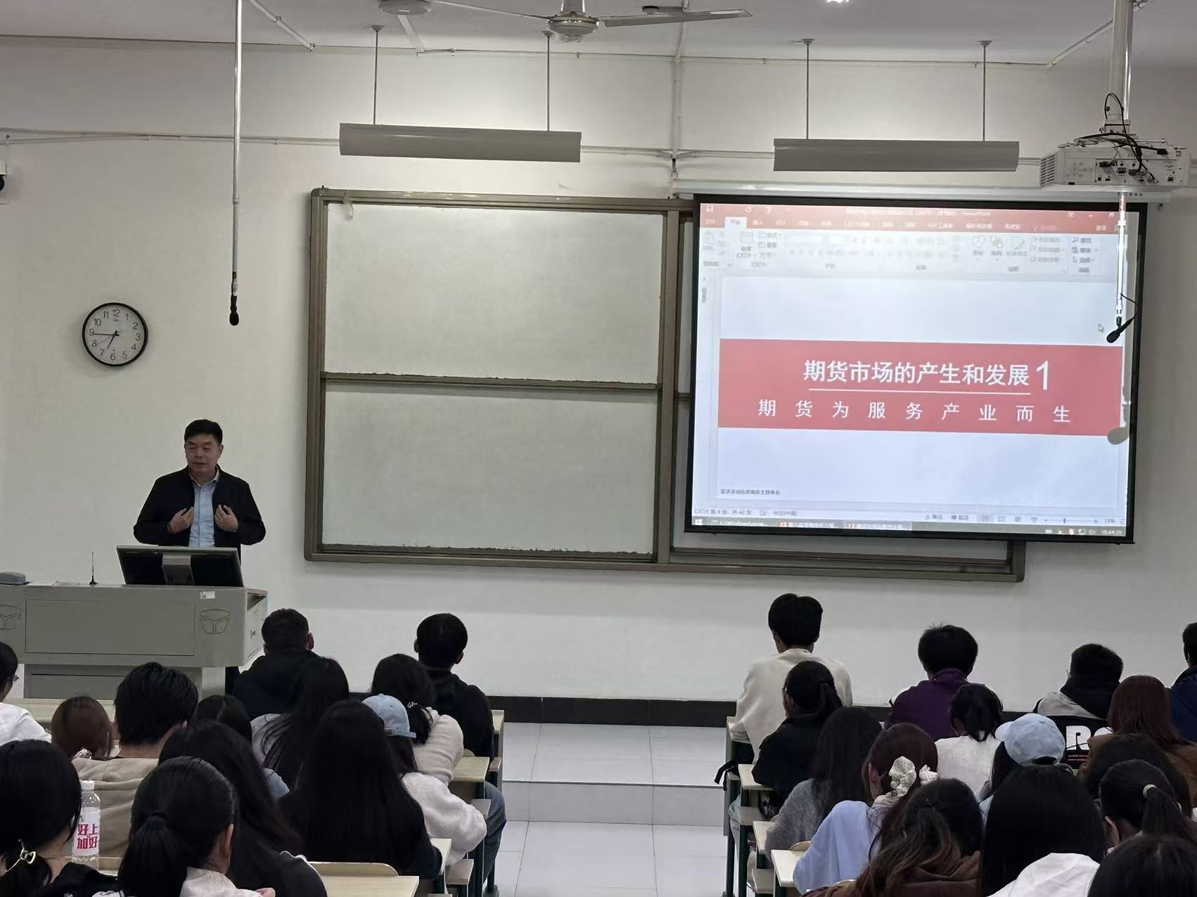 随后,郑商所及行业机构讲师开展了系统的期货知识普及讲座。内容涵盖期货市场的基本概念、功能作用、运行机制以及主要交易策略等。讲座结合当前宏观经济形势与具体案例,深入浅出地阐述了期货市场在服务实体经济、管理价格风险方面的重要价值,帮助同学们构建起对期货市场的初步认知框架。此外,讲师还就金融衍生品工具的创新与发展、职业生涯规划等话题与在场同学进行了交流,为有志于投身金融行业的学子们提供了宝贵的指导和建议。
