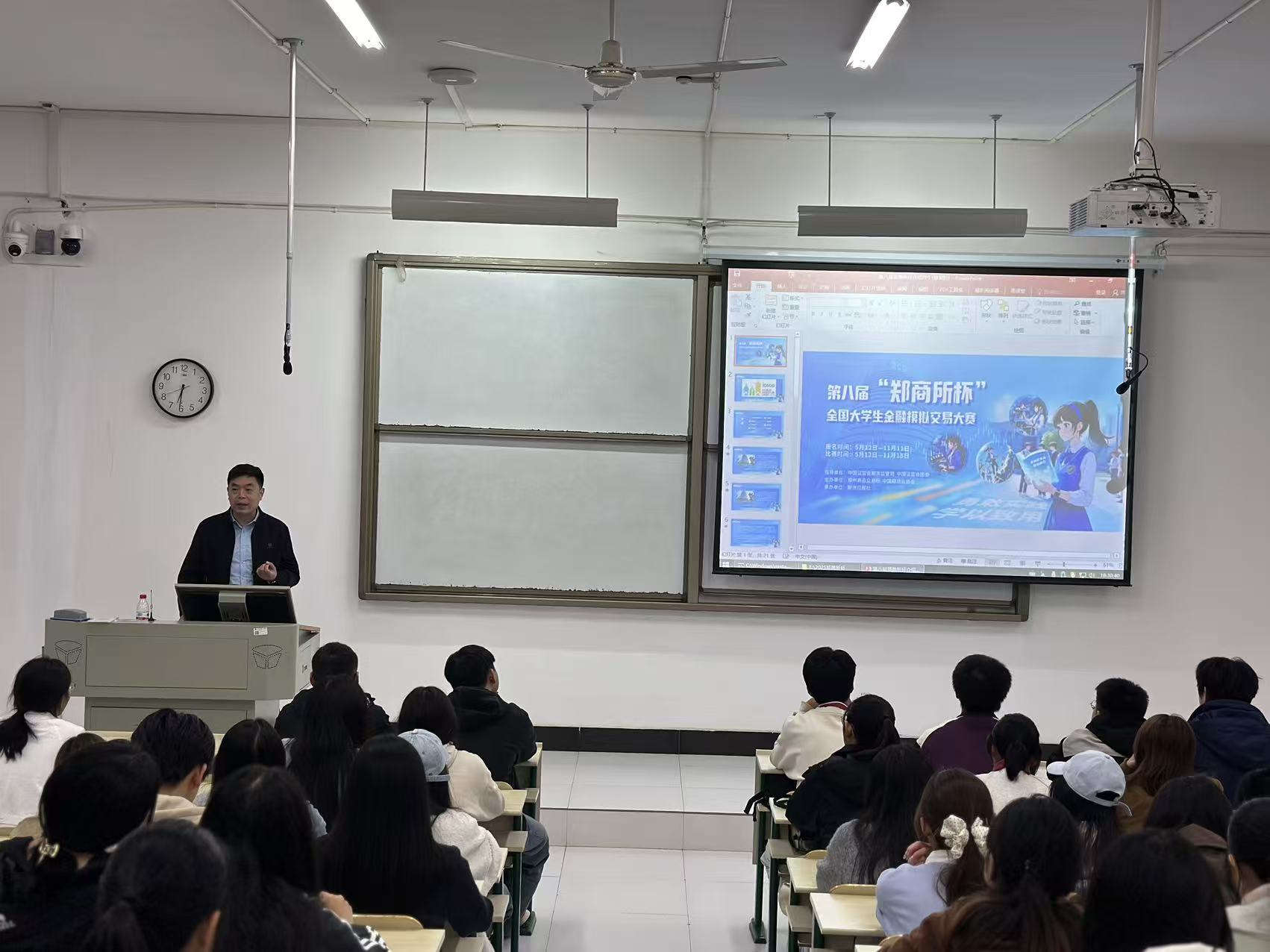 2025年10月24号下午18:30,第八届“郑商所杯”全国大学生金融模拟交易大赛培训暨期货知识进校园宣讲活动在3号学院楼3306教室顺利召开。本次活动由金融与经济学院联合正信期货有限公司共同举办,旨在普及期货及衍生品知识,提升学生对现代金融市场的认知与实践能力,激发大学生参与金融市场的兴趣,为培养未来金融领域专业人才奠定基础。