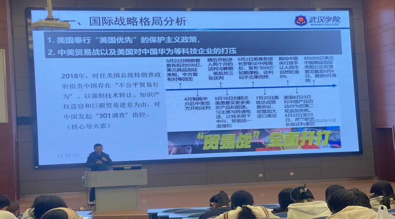 2025年11月5日下午,金融与经济学院主办的题为《国内外形势分析及中国的应对之策》的学术讲座在中2103报告厅举行。本次讲座由经济学博士肖晓勇教授主讲,旨在帮助师生拓宽宏观视野,深刻理解当前国际国内形势,把握时代发展脉搏。
