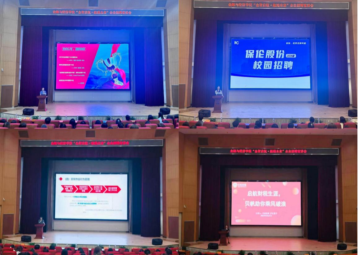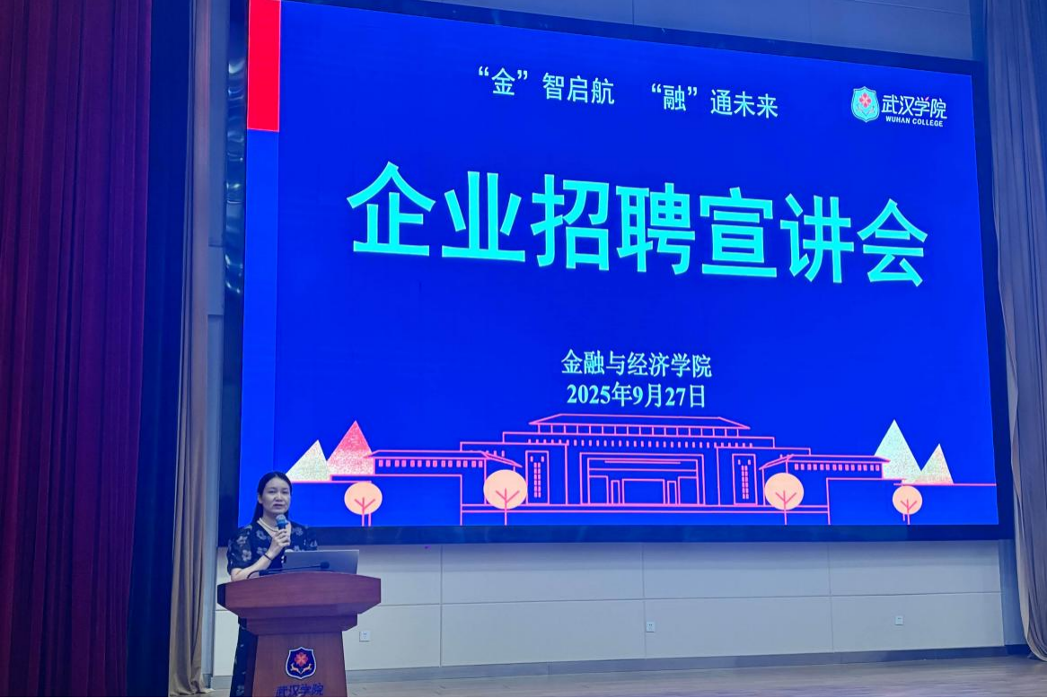 2025年9月27日晚17时,金融与经济学院“金智启航·融通未来”企业招聘宣讲会在刘炽平报告厅顺利开展。招商银行信用卡中心、广东保伦电子股份有限公司、武汉楚秀人力资源有限公司、贝帆财务咨询有限公司四家企业依次进行了宣讲,为学子带来了多元就业选择。