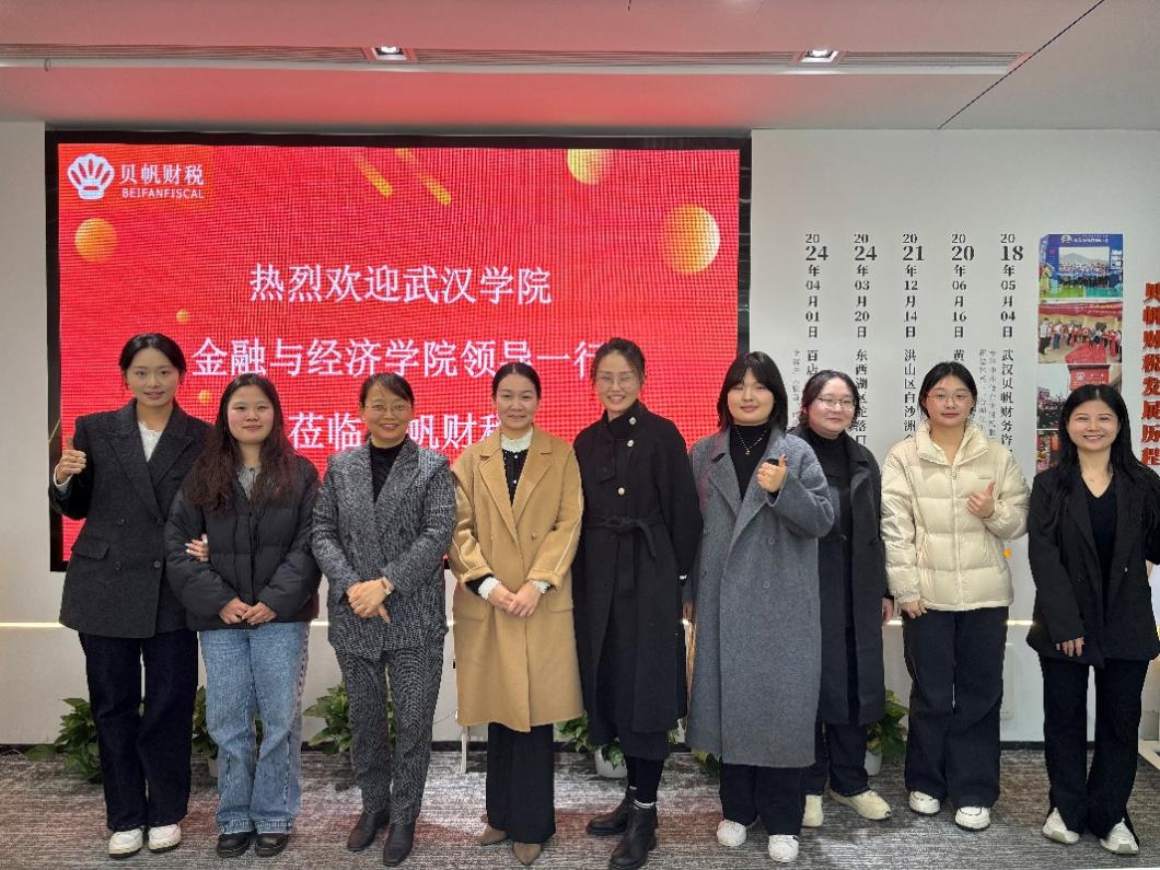2025年11月20日下午,金融与经济学院副院长周利、党总支副书记常桥带队赴校友单位贝帆财税开展访企拓岗活动,并就签署实习基地相关协议达成初步意向。学院财税系专任教师罗娅婕、陈钟迪随行参与。此次活动旨在通过实地走访、座谈交流,深化校企双方在人才培养、实习实践、就业招聘等领域的合作,助力学生高质量就业,深入推进“访企拓岗促就业”专项行动,进一步拓展财税系学生实习就业渠道,加强校企合作与校友联系。