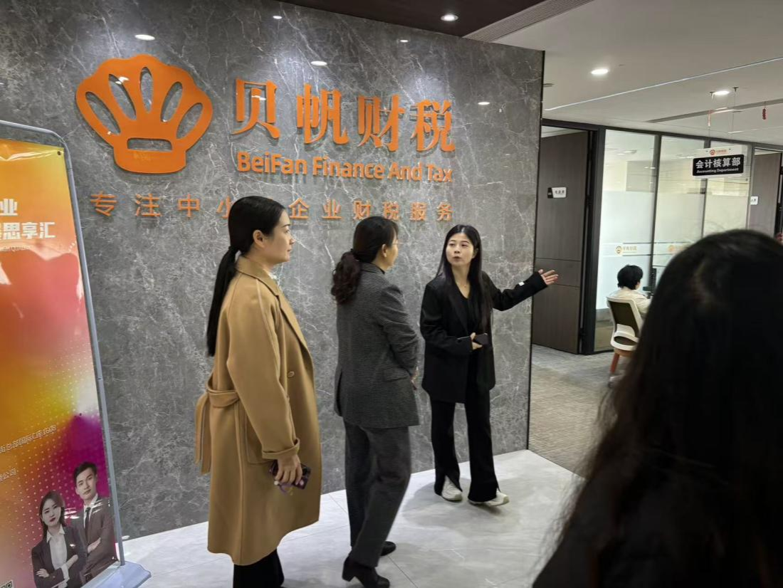 抵达贝帆财税后,学院一行在贝帆财税人事行政经理罗良慧子的带领下参观了公司办公区、业务办理大厅及休闲区等区域。同时她详细介绍了企业运营模式、业务范围及工作环境。罗良慧子表示贝帆财税是一家年轻有爱的企业,非常欢迎并吸纳了许多年轻人,整个办公氛围关注员工的心情,培养出了“眼里有光、嘴上带笑、心中有爱,肚里有料”的贝帆人。学院教师对贝帆财税现代化的办公设施、人性化的工作氛围及高效的管理模式留下了深刻印象,切身感受到企业蓬勃的发展活力。