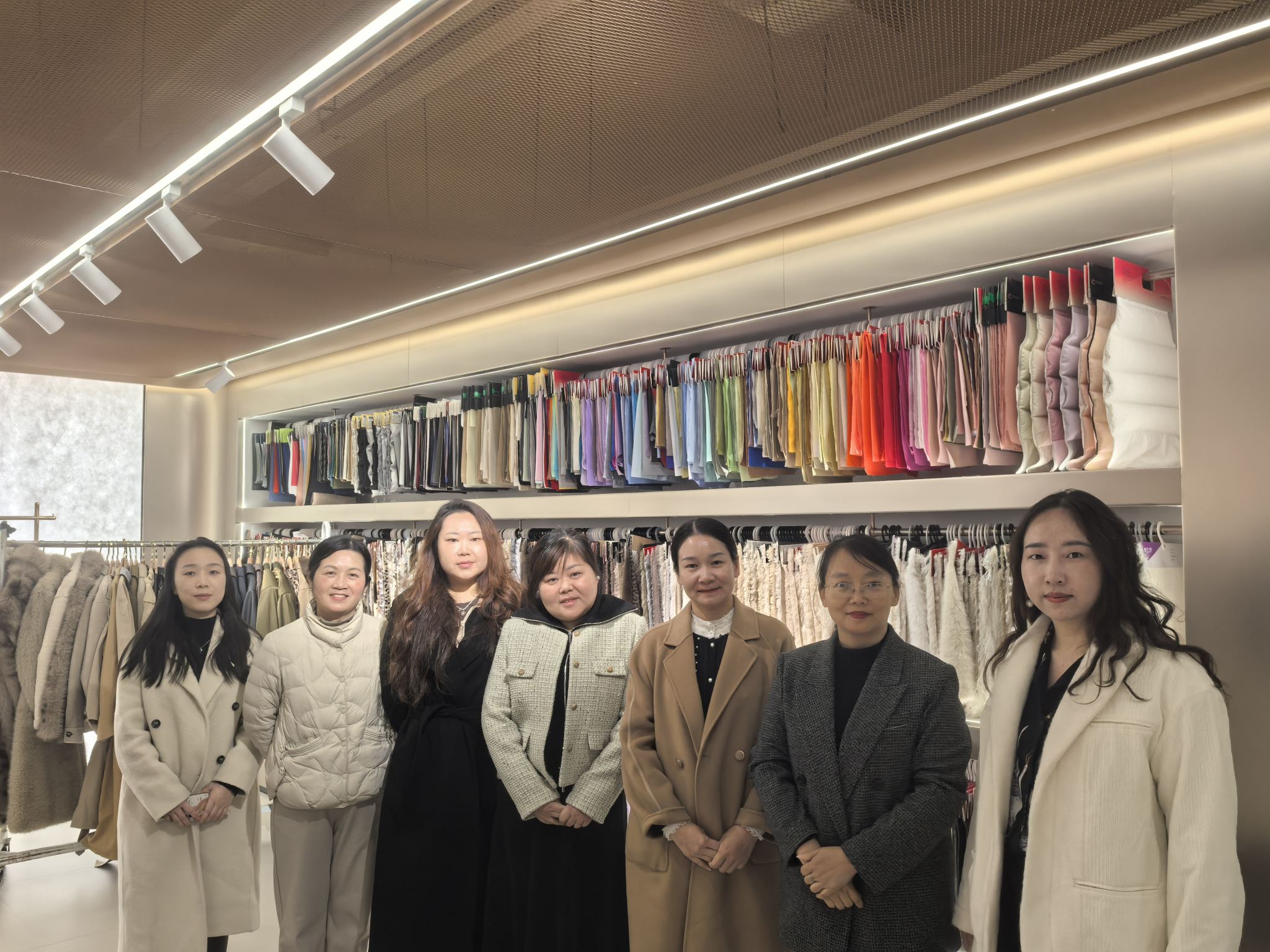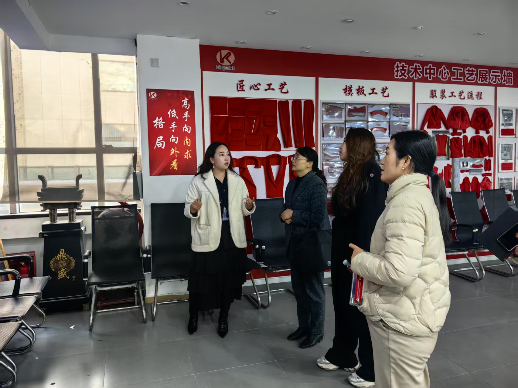 会后,在张娟的带领下,一行人参观了企业的智慧车间与研发中心。在智慧车间内,自动化裁剪设备与AI质检系统高效协同,展现了智能制造在传统行业的深度应用;研发中心则聚焦面料创新与可持续设计,团队成员与企业工程师围绕“绿色供应链金融”“跨境电商支付结算”等议题展开技术探讨。