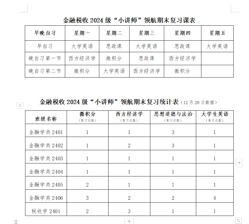 此次“小讲师”领航期末复习活动,不仅为同学们提供了一个相互学习、共同进步的平台,也培养了同学们的自主学习能力和团队协作精神。通过这种创新的复习方式,金融学类2401-2406班和税收2401班的同学们在期末复习中更加得心应手,信心满满地迎接即将到来的期末考试,争取取得优异的成绩,为班级争光添彩,也为今后的学习打下坚实的基础。