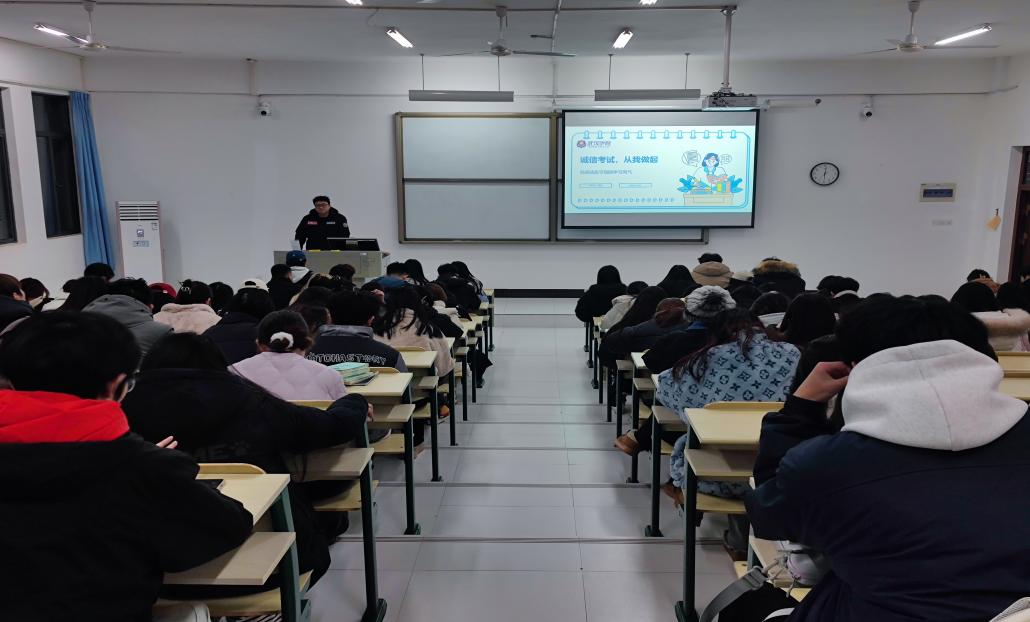 金融与经济学院财政学类2301—2303、金融服务与管理2301—2304、金融学2206、2207班于12月22日晚分别在学3501、3502、3503教室组织开展了“诚信考试,从我做起”主题班会。辅导员覃锋主持会议,全体学生参会,引导同学们树立正确的考试观念,坚守诚信底线,共同维护良好的学风考纪。