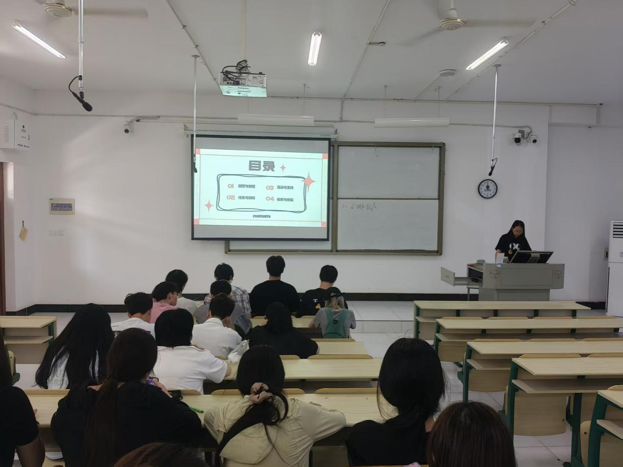 班会伊始,鞠晨晨以“回顾与启程”为切入点,简洁梳理了大一学年班级在专业学习、校园活动中的亮眼表现。主要从多名同学斩获国家级跨境电商模拟竞赛奖项,到班级平均绩点稳居专业前列,既肯定了同学们过往的努力,也通过对比大二学年课程安排,强调本学年作为“专业能力夯实关键期”的重要性,从而引出班会的核心议题。