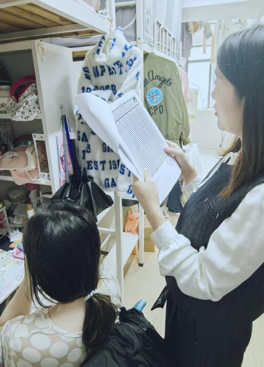 在校园的日常时光里,总有那么一群人,用脚步丈量学生的生活点滴,用真心关注学生的成长轨迹。他们就是我们的班主任老师,他们不仅是学业路上的指引者,更是生活中的贴心人。金融学2302班班主任包小玲利用9月30日上午的时间,深入学生宿舍开展查寝工作。此次查寝围绕学生日常生活、学习进度、竞赛参与、方向规划四大维度展开,还特别询问国庆假期计划并送上节日祝福,以全面关怀助力学生成长。