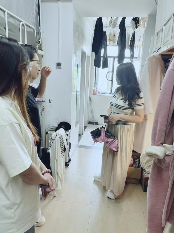 刚走进宿舍,包小玲便笑着感慨,“这次来明显感觉宿舍环境好了不少,桌面没有杂乱堆放的物品,阳台也收拾得很整齐,这样的环境住着舒服,也能让人更有状态投入学习和生活。”她还顺势叮嘱大家,保持整洁的居住环境不仅能提升生活幸福感,也能培养良好的生活习惯,后续要继续维持,若遇到宿舍设施故障等问题,随时跟她反馈解决。