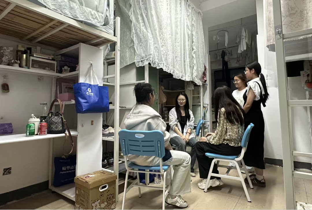 在走访过程中,万昕老师首先将宿舍安全作为重点关注对象,逐一检查电器设施的运行情况,无论是插座的使用细节,还是违规电器的使用,都进行了细致的核实。她结合检查中的具体细节,向同学们提出了“合理使用电器、保持插座周边整洁”等实用建议。随后,鉴于新生初入校园的适应需求,万昕老师组织了一场温馨的交流会,逐一询问大家的校园生活感受及住宿适应过程中遇到的难题,如作息协调、设施使用等,并针对具体问题提供解答,同时再次强调将安全意识融入日常生活中的重要性。