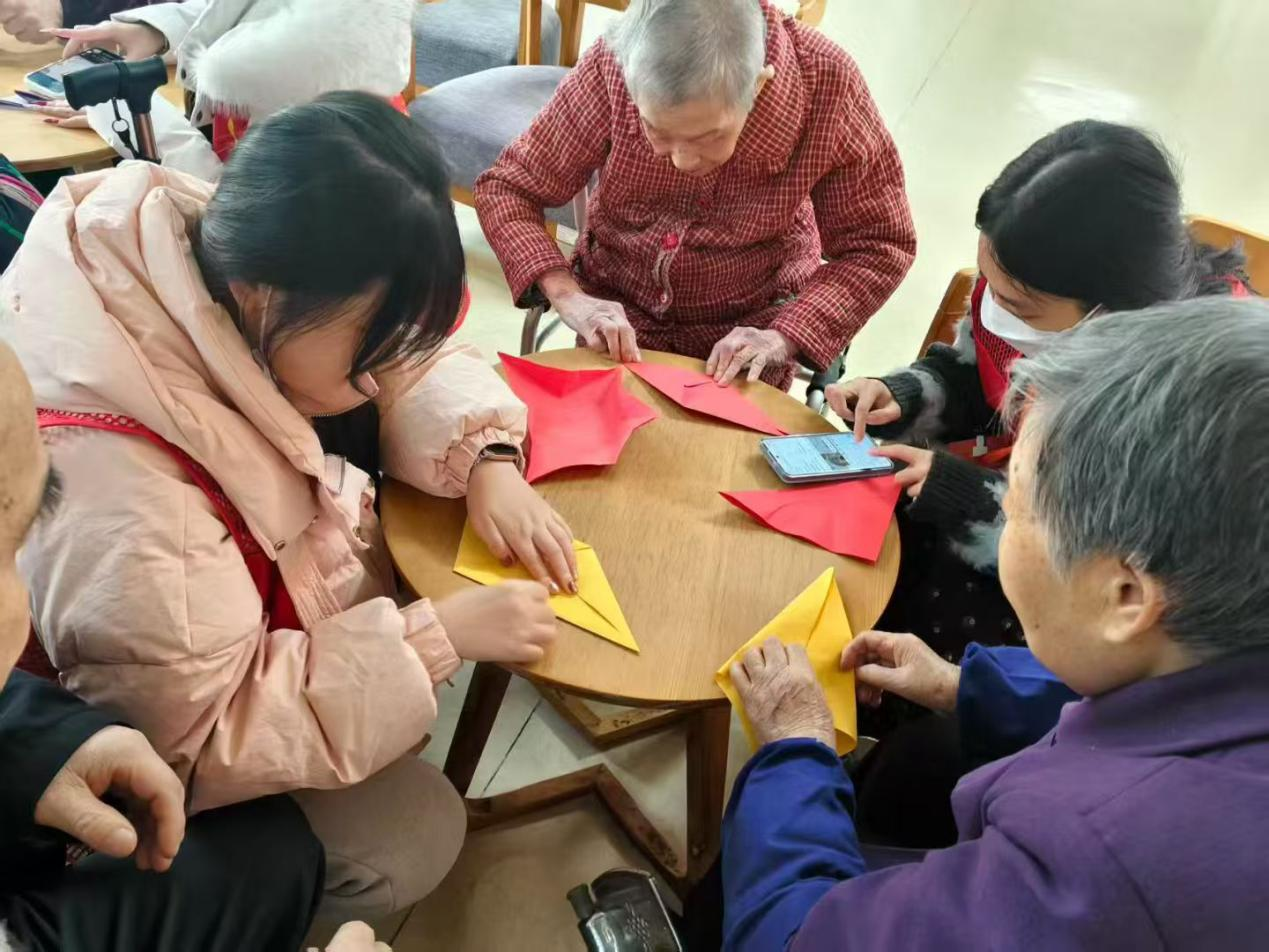 寒冬虽至,温暖相伴。2025年12月13日下午14:00,税收2501班10名同学走进洪山区社会福利院,开展了一场以“剪纸传情,灯笼寄福”为主题的志愿服务活动,用真诚的陪伴为老人们送去冬日的问候。